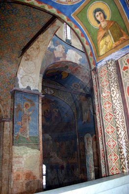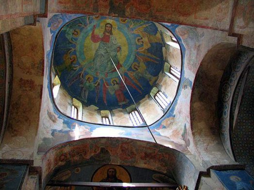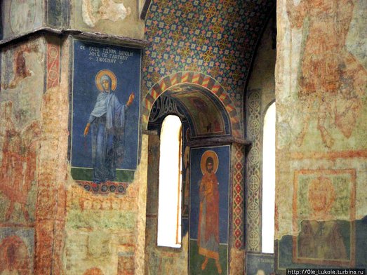 Подписи к фрескам написаны на славянском языке. Это свидетельствует о том, что расписывали храм русские, а не греческие художники (как например, в Софии Киевской).
