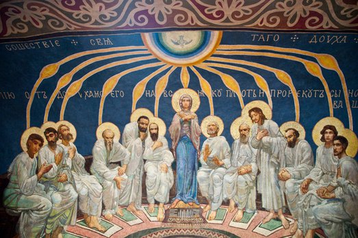 Самой грандиозной работой Михаила Александровича в тот период стало “Сошествие Святого Духа” – работа, расположенная на хорах храма. Оригинальная роспись на этом участке свода была полностью уничтожена временем. И тут во всей мощи проявился талант Врубеля. Без картонов, без эскизов – он создал грандиозную монументальную композицию. В ликах апостолов угадываются черты современников Врубеля. Он писал их с представителей интеллигенции и духовенства Киева, с которыми общался во время своего пребывания в нашем городе.