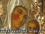 По краю одежды Царицы Небесной и из ножек Младенца стала сочиться кровь.