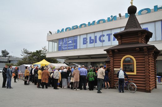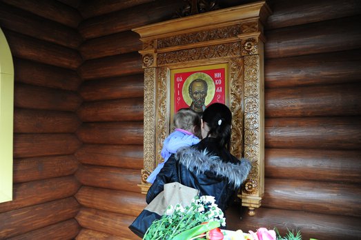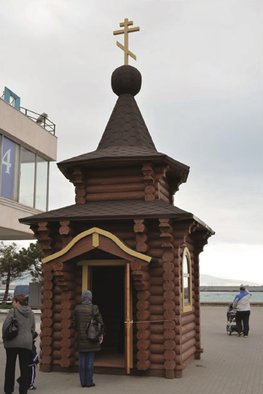 Особой любовью у православных Новороссийска пользуется образ Святого Николая Чудотворца, находящийся в деревянной часовне, созданной по проекту Софии Мачигиной. Эта обыденная часовня была установлена во время I Международной православной выставки-ярмарки "Православное Черноморье" у Морского вокзала портового города в мае 2012г. Она символизировала собой как напоминание о разрушенном здесь после октябрьского переворота 1917г. старинном храме во имя Святого, так и строительство здесь по призыву Святейшего Патриарха Московского и всея Руси Кирилла будущего большого Свято-Никольского Морского собора. Ныне часовня находится возле храма Святых Петра и Февронии на наб. Серебрякова, здесь к образу Святого Николая Угодника обращаются моряки и их родные, гости города, и по вере получают просимое.