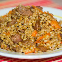 13. Когда жидкость закипит, делаем самый маленький огонь, прикрываем казан крышкой и готовим плов минут 40-45.
