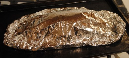 6. Фольгу завернуть, плотно закрепляя края и отправить в предварительно разогретую духовку на 20-30 минут. Окунь в духовке в фольге может готовиться и дольше, в зависимости от размера рыбки.