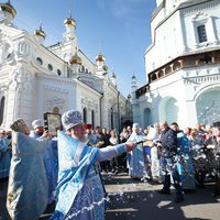 По окончании Божественной литургии митрополит Онуфрий со священнослужителями и верующими совершили крестный ход к памятному кресту на центральной площади обители, где было вознесено молебное пение к Деве Богородице с хвалебной песнью: "Царице моя Преблагая".