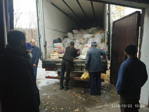 В обитель доставили 21 тонну гуманитарной помощи для содержания вынужденных переселенцев, проживающих в Святогорской Лавре. Груз состоит из 16 тонн овощей, 3, 5 тонн яблок и 1, 5 тонн консервации.