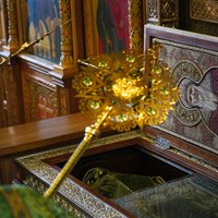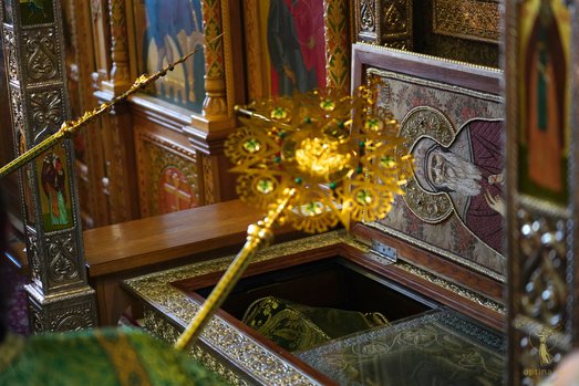 Во время всенощного бдения для поклонения был вынесен ковчег с частицей мощей святого.