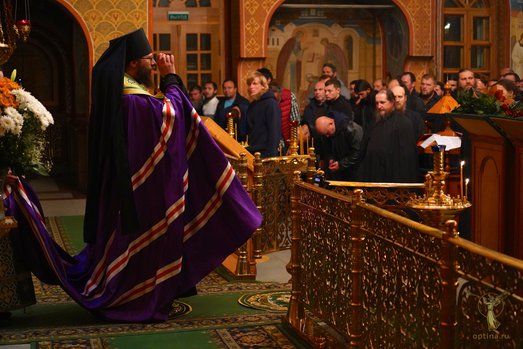 Накануне вечером в монастыре совершили вечерню с акафистом преподобному старцу и всенощное бдение. Богослужения возглавил наместник монастыря епископ Можайский Леонид.