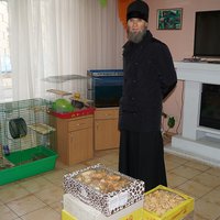 Иеромонах Лукиан привез воспитанникам центра сладости к чаю, пообщался с детворой и похвалил выставочные экспонаты.