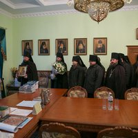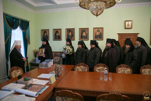 Затем с поздравительным словом к Его Высокопреосвященству от лица всей братии обратился благочинный Святогорской Лавры архимандрит Галактион (Вуйченко). Поздравив митрополита Арсения с годовщиной архиерейский хиротонии, отец благочинный пожелал владыке помощи Божией, помощи Пресвятой Богородицы в его служении архиерейском, особенно в эти тяжёлые дни испытаний для Святой канонической Церкви.