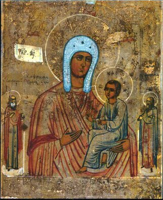 О, Мати Божия, Хлебом жизни питающая нас, днесь же прославляем милость Твою, трапеза наша Пресвятая молим Тя; егда скудное время приидет и глад найдет на землю нашу, не отврати Твоя рабы тщы, яви залог Благоволения Твоего на ны милосердовавши и скорбных чад Твоих напитай и утеши, и спаси землю Русскую Тя бо и едину надежду имамы.