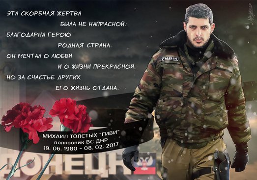ДОНЕЦК, 8 фев — РИА Новости. Командир батальона "Сомали" Михаил Толстых, известный как Гиви, погиб в результате теракта, сообщил представитель Министерства обороны самопровозглашенной Донецкой народной республики.