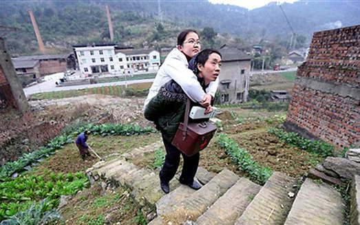 Ли Йухонг лишилась обеих ног в ужасной аварии, когда ей было всего 4 года. В 8 лет она научилась передвигаться с помощью деревянных табуреток, на которые опиралась руками. Сейчас Ли 37, и она вот уже 15 лет заботится о пациентах родной деревни.