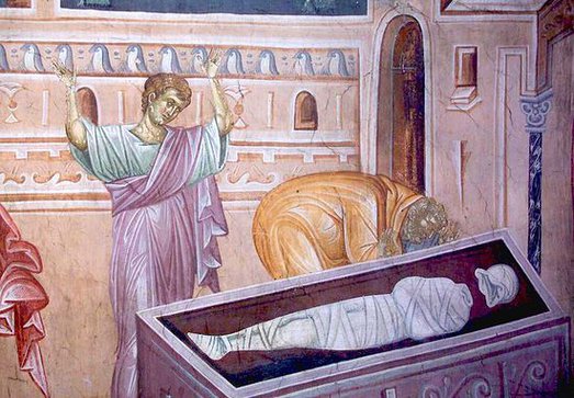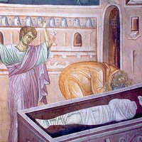 «Когда же недоумевали они о сем, вдруг предстали перед ними два мужа в одеждах блистающих. И когда они были в страхе и наклонили лица свои к земле, сказали им: что вы ищете живого между мертвыми? Его нет здесь: Он воскрес; вспомните, как Он говорил вам, когда был еще в Галилее» (Евангелие от Луки, 24:4-6)