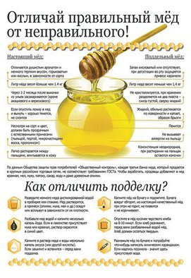 Полезный совет как выбрать качественный мед, волнует практически всех. Пасечники советуют так: возьмите деревянную палочку (даже спичку без головки) и прокрутите ее в меде. Настоящий мед должен накручиваться на палочку, а искусственный – стекать. Или такой способ – возьмите каплю меда и помните в пальцах – натуральный будет прилипать и руки придется мыть. А «сахарный» мед скатается, и пальцы останутся чистыми через минуту. Или еще – капните чуть меда на ноготь большого пальца. Если он растекается – мед разбавленный или пчел кормили сахаром. Настоящий так и останется лежать каплей. Еще советы – на фото.