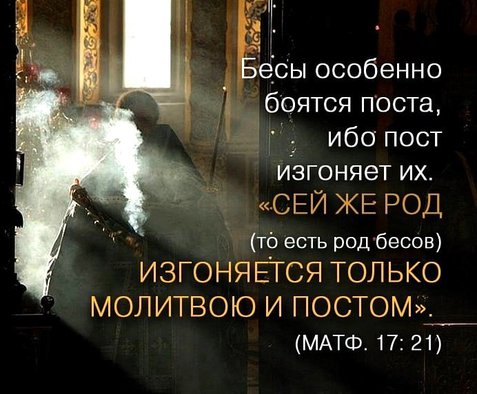 "Сей род – сказал Господь своим апостолам о духах злобы – ничимже может изыти из одержимых ими, токмо молитвою и постом"...