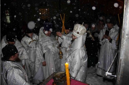 Спаси, Господи весь клир Сергиевского собора.Счастливые, кто побывал на вечерней службе. А утром весь город замело. Я осталась без Крещенской воды. Особенная благодарность диакону Юрию, посмотрела хоть на фото.