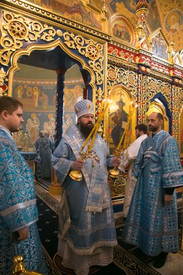 После Литургии Митрополит Пантелеимон обратился ко всем присутствующим с Архипастырским словом, выразив благодарность за труды, оказанные при возведении храма, духовенству, членам Попечительского совета Успенской обители, строителям и меценатам.