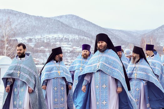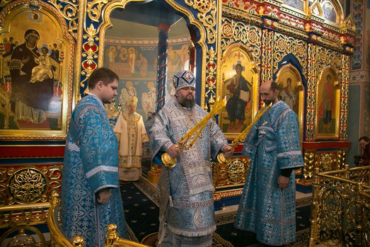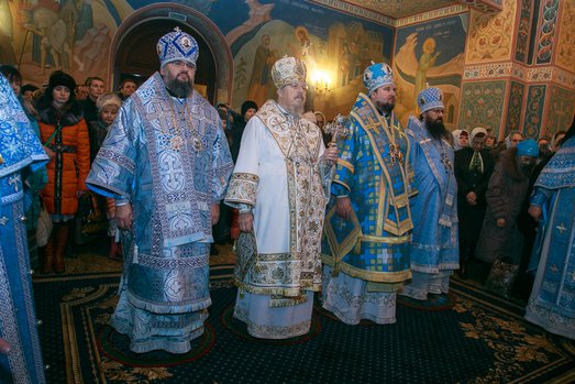 За богослужением иерархам Красноярской митрополии сослужили: исполняющий обязанности секретаря Красноярской епархии, благочинный церквей Левобережного городского округа Красноярска, наместник Успенского монастыря игумен Иннокентий (Нилов), заведующий канцелярией Красноярской епархии, благочинный церквей Красноярского округа, настоятель Иоанно-Предтеченского храма Красноярска протоиерей Николай Ши-кэ-мин, благочинный церквей Правобережного городского округа Красноярска, настоятель красноярского храма Рождества Христова протоиерей Максим Смоляков, настоятель Михаило-Архангельского храма города Красноярска протоиерей Александр Садовьюк, настоятель Никольского кладбищенского храма иерей Александр Колпаков, настоятель Димитриевского храма-часовни города Красноярска иерей Виталий Вальтер, братия Успенского монастыря и штатные священнослужители Покровского кафедрального собора Красноярска. ссылка