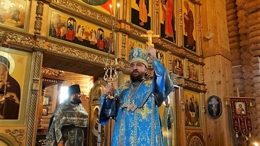 По окончании Божественной литургии состоялся праздничный крестный ход вокруг храма. Владыка Григорий окропил всех святой водой, благословив иконой Божией Матери «Скоропослушница».