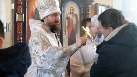 Владыке Григорию сослужили настоятель храма Преображения Господня иерей Сергий Лойко, иерей Александр Мартышкин, диакон Николай Чемес, диакон Глеб Андреев.