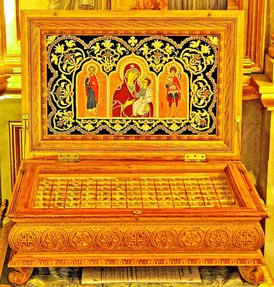 Частица гроба святого равноапостольного князя Владимира доступна для поклонения и хранится в мощевике в Храме Иверской иконы Божией Матери на всполье на Соколе в городе Москва.
