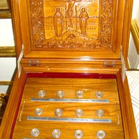 Святые мощи прп. Авраамия Печерского, Трудолюбивого доступны для поклонения в Спасо-Вознесенском Елеонском женском монастыре на Елеонской горе. (фото автора). Святой ковчег содержит частицы мощей: