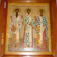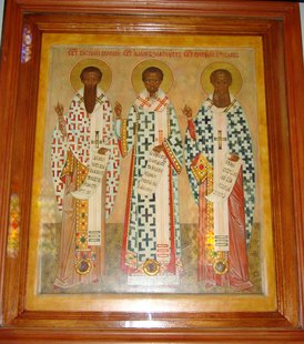 Икона трех святителей включает мощи свт. Василия Великого, свт. Иоанна Златоуста и свт. Григория Богослова. (фото автора)