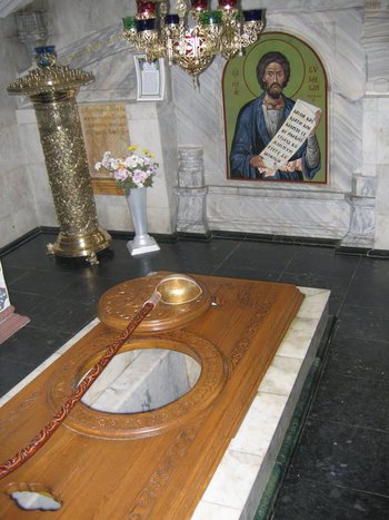 На месте обретения мощей высится храм, а сам источник почитается местными жителями чудотворным и находится внутри храма. Говорят, правда, что не во всякое время года он дает много воды. От паломников, посещавших этот источник, я слышал, что исцеления совершаются от его воды и доныне.