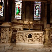 Кафедральный собор генуэзской епархии посвящен святому Лаврентию. Он находится в неподалеку (200 м на запад) от Герцогского дворца и площади де Феррари.