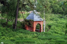 Святой источник во имя Пресвятой Богородицы иконы её Казанской расположен в 250 м от скита, рядом с заливом пруда, в часовне. От входа в скит идем грунтовой дорогой влево вдоль пруда, от крайнего дома из красного кирпича спускаемся по тропе к источнику.