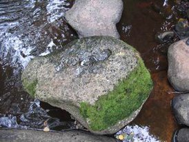 Придя к плотине, он увидел ее полностью разрушенной, как и в предыдущие разы. Вдруг кто-то из присутствующих заметил на одном из камней, лежащих в воде, следы. Один след большой, как от обуви взрослого человека, и несколько маленьких, младенческих, от босых ног.