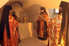Для того, чтобы подойти к источнику, необходимо спуститься по узкой лестнице подземной церкви длиной в 33 ступени, обойти уникальный медный иконостас и спуститься еще ниже в предел мученика Кириака. Правее будет расположен колодец. Набрать воды можно и не спускаясь в храм. Рядом со входом открыта небольшая часовенка, где доброжелательная старушка нальет вам святой воды из источника в вашу либо в храмовую бутылочку, которых там заготовлено великое множество.