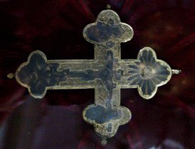 Крест-мощевик с частицей Честного Животворящего Креста Господня и 29-ю частицами многоцелебных мощей святых угодников Божиих: