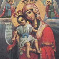 Прославилась эта икона Богоматери и получила свое название благодаря чудесному случаю, произошедшему на Святой горе Афон, в монастыре недалеко от Карей. По преданию, там жил отшельником один старец - священноинок со своим послушником. Однажды старец в воскресенье отправился в монастырь к всенощному бдению, благословив ученика совершить службу дома. Во время всенощной раздался стук в дверь. Ученик, отворив, увидел незнакомого инока, которого впустил с приветливостью и с которым вместе стал совершать молитвенные песнопения. Когда пришло время величать Пресвятую Богородицу, оба встали пред иконой и послушник было запел "Честнейшую Херувим...", как вдруг удивительный гость запел ангельским голосом "Достойно есть, яко воистину, блажити Тя, Богородицу...", а после этого - "Честнейшую Херувим". Молодой инок, умилившись до слез ангельским пением гостя, стал просить его записать эту песнь, но так как записать оказалось нечем и не на чем, дивный гость сказал: "В таком случае я запишу эту песнь на этом камне, а ты ее заучи и всех других христиан научи именно таким образом славить Пресвятую Богородицу". Гость начертал песнь на камне, который умягчился под его рукою, как воск, назвался Гавриилом и исчез.