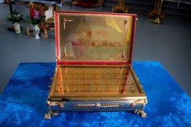 Частица святых мощей св. вмц. Екатерины Александрийской доступна для поклонения и паломничества верующих в Благовещенском храме с. Крутые хутора, Липецкой области.