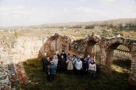 В 1804 г. была построена каменная двупрестольная церковь. Главный престол во имя Св. Михаила Архангела и придельный во имя Св. Пророка Илии. — Клировая ведомость Легостаевского храма 1812—1814 гг. Центр хранения архивного фонда Алтайского края. Ф. Д-26. Оп. 1. Д. 314. Л. 150.