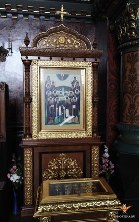 Также в храме пребывают икона и мощевик Собора преподобных старцев Оптинских. Святыни расположены слева от амвона. В Собор Оптинских старцев входят 14 преподобных.