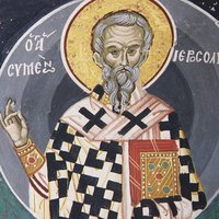 По преданию, апостол Симеон считался сыном АП. КЛЕОПЫ (то есть двоюродным братом Иисуса Христа). Он уверовал во Христа в зрелом возрасте и стал епископом Иерусалима после смерти АП. ИАКОВА. По церковному преданию, Симеон в глубокой старости принял мученическую смерть через распятие при императоре Траяне.