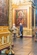 Видно передовую пару шестерки, покойной рысью, с выносным на левой… голубую широкую карету. Из дверцы глядит голова монаха. В глубине смутно золотится. <…>