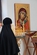 Пе́ние хвале́бное и благода́рственное прино́сят Тебе́, Влады́чице, припа́дающе ко иконе Твое́й и любе́зно лобыза́юще ю, дев ли́цы, под держа́вным покро́вом Твои́м ти́хое и ми́рное и́ноческое житие́ провожда́ющии, и возложи́вше на Тя все упова́ние, ра́достно вопию́т Бо́гу: Аллилу́иа.