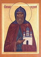 Бурею помыслов смущаемь был еси, преподобне, о недостоинстве своем, размышляя о немощи своей исполнити благословение: како буду воздвизати обитель имени Владычицы Небесной, купно же и памяти святителя. Темже укрепляемь и ободряемь дивным видением, уразумел еси, яко Сама Пречистая Дева благословляет тя устроити храм и обитель во имя Введения Ея во храм, Ейже со умилением взывал еси, отче, поя Богу: Аллилуиа.