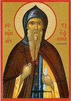Преподобномучениче отче Трифоне! Воззри на нас милостивно и к земле поверженных возведи к высоте небесней. Ты горе на небеси, мы на земли низу удалены от тебе не толико местом, елико грехами своими и беззаконьями, но к тебе прибегаем и взываем: настави нас ходити путем твоим, вразуми и руководствуй. Вся твоя святая жизнь бысть зерцалом всякия добродетели. Не престани, угодниче Божий, о нас вопияти ко Господу. Испроси предстательством своим у Всемилостиваго Бога нашего мир Церкви Его, под знаменем Креста воинствующей, согласие в вере и единомудрие, суемудрия же и расколов истребление, утверждение во благих делах, больным исцеление, в печалех утешение, обиженным заступление, бедствующим помощь.