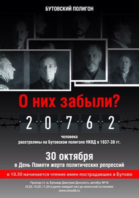 Бывший стрелковый полигон НКВД в Бутово хорошо известен как одно из мест массовых расстрелов и захоронений жертв политических репрессий советской эпохи. Только в период "большого террора", с августа 1937 по октябрь 1938 года, здесь были расстреляны 20 762 человека – в основном жителей Москвы и Подмосковья, люди разных национальностей, вероисповеданий и политических убеждений. Поэтому так важно именно здесь, у безмолвных братских могил, принести свидетельство нашей памяти.