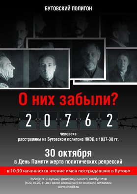 Приглашаем вас принять участие в ежегодной акции «Голос Памяти» на Бутовском полигоне 30 октября 2018, посвященную Дню памяти жертв политических репрессий.