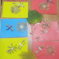 Из природных материалов делали стрекозу и цветочек.