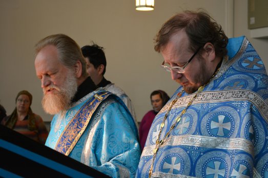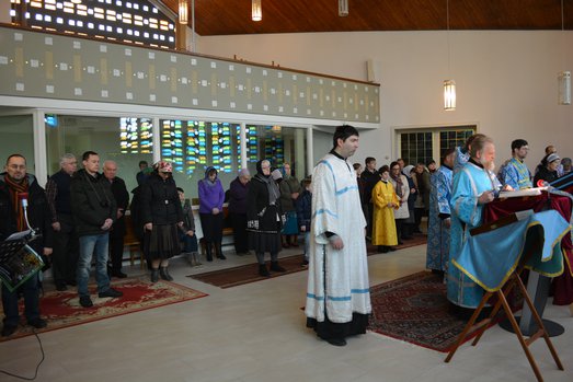 В этом году праздник Благовещения совпал с Великим вторником Страстной седмицы, а значит и служба была особая, включающая в себя элементы строгих и праздничных молитв и песнопений. Долгое, более чем пятичасовое богослужение совершалось по уставу и включало в себя полное чтение Евангелия от Марка и кафизм на часах. Несмотря на такую продолжительность службы, будний день и рабочий график многих братьев и сестёр, прихожане нашли время для молитвы. За время службы насчитывалось до 80 человек, большинство из которых причащались Св. Тайн. Отрадно было видеть большое количество детей, которые вместе с родителями с радостью пришли на праздник Пресвятой Богородицы и участвовали в великом Таинстве причастия. Часть богослужебного времени им, конечно, пришлось провести в специально оборудованной детской комнате.