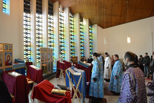 Незадолго до службы трудами диакона Александра была установлена основная часть иконостаса, подаренного приходу настоятелем храма прп. Серафима Саровского в Клоппенбурге иереем Олегом Никифоровым, а мастером Алексием изготовлен в полном соответствии с каноном престол из сибирской лиственницы и канадского клена.