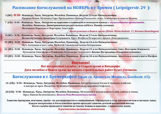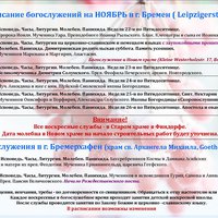 Расписание богослужений на НОЯБРЬ