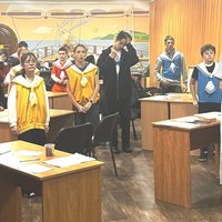 В последнее воскресенье мая в Воскресной школе духовного пения при храме в честь Вознесения Господня завершился учебный год проведением Итоговой интеллектуальной игры среди воспитанников основной и выпускников начальной ступени ВШ. Игра была посвящена темам из области Основ Православной культуры. Соревновались 4 команды: Чайка (синие), Красные гипотенузы, ССД (зелёные) и Солнечные зайчики (жёлтые). После традиционной жеребьёвки, определившей порядок выступления команд, началась разминка капитанов. Зубарева Маша, Певнев Денис, Бураков Александр и Бойко Тимофей заработали первые очки для своих команд, пройдя блиц-опрос. Затем в определённом порядке команды отвечали на вопросы и выполняли задания. За соблюдением правил игры строго следили преподаватели - члены жюри : Хомутова Елена Викторовна, Ерёмина Виктория Сергеевна и Мамышева Мария Анатольевна. Практическая часть игры была выполнена воспитанниками основной ступени, которые рассказали присутствующим в зале младшим школьникам о подвигах русских святых: о Луке Войно-Ясенецком, о Фёдоре Ушакове, об Илье Муромце, о Сергии Радонежском, о Серафиме Чичагове. Результаты игры были подведены и озвучены за сладким столом. Как всегда в таких играх в нашей воскресной школе победила ДРУЖБА!