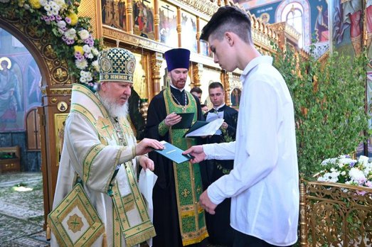 По окончании богослужения Владыка Александр вручил свидетельства об окончании воскресных школ и памятные подарки. В этом году в храмах Брянской епархии 51 ребенок завершил обучение в церковно-приходских школах. Воскресную школу духовного пения при храме в честь Вознесения Господня в этом году окончили 4 воспитанника основной ступени : Бойко Тимофей, Певнев Денис, Подольников Максим и Рябинин Николай. Завершился праздник в соборе фотографированием на память.