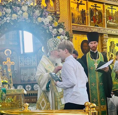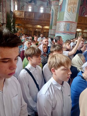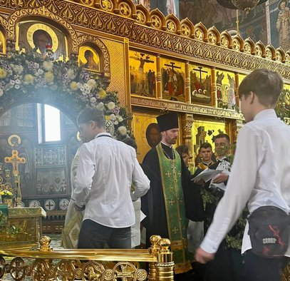 В прошедшее воскресенье, в праздничный день Святой Троицы воспитанники основной ступени приходской Воскресной школы вместе со своим руководителем -адмиралом флотилии «Спасение» Викторией Сергеевной Ереминой посетили престольное торжество в Брянском кафедральном соборе.